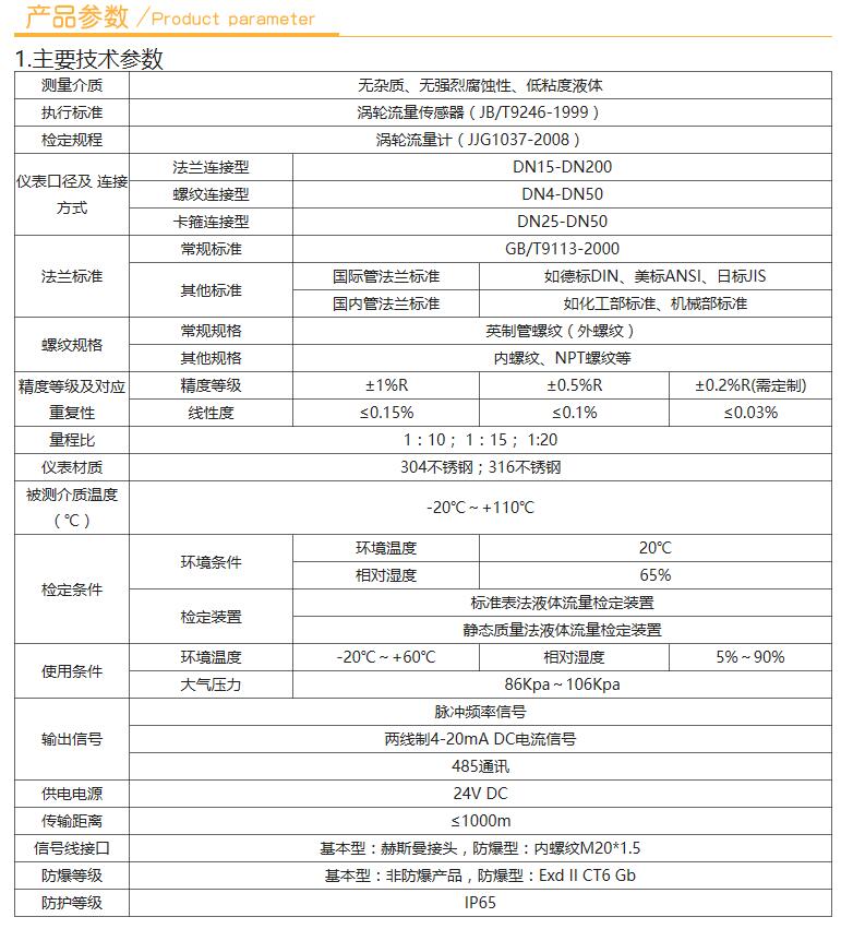 6.量程比宽,中大口径可达1:20,小口径为1:10;